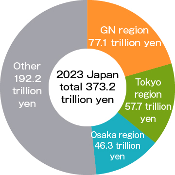 Tokyo region 57.7 trillion yen Osaka region 46.3 trillion yen