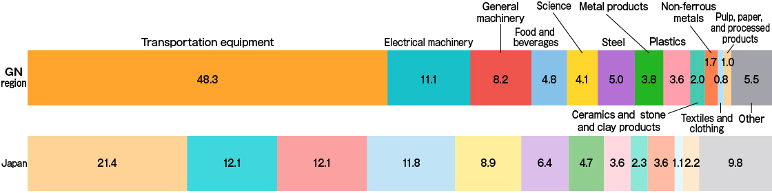 Despite possessing only about 10% of Japan’s area and population, the Greater Nagoya Area is Japan’s leading manufacturing region with a cluster of manufacturing companies that lead the world in a wide range of fields, including transportation equipment, electronic parts, materials, industrial equipment, medicine, and ceramics.